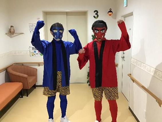 今年は、優しく・元気な・若い・本物の赤鬼と青鬼が『ル・レーヴふじみ野』に現れました。