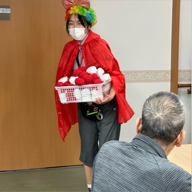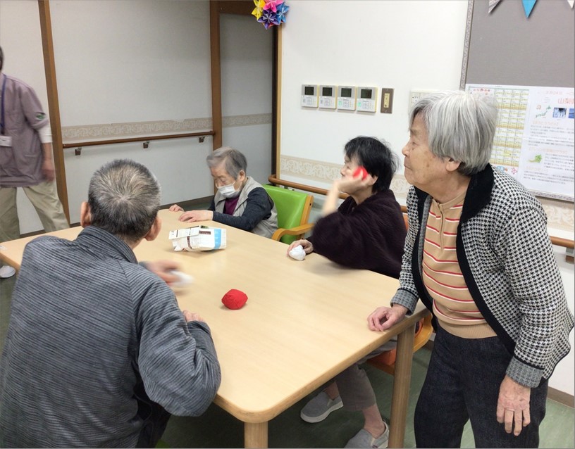 鬼がもう持てないー!と降参する位、入居者様達で協力しあって、紅白玉を投げ入れて下さいました。