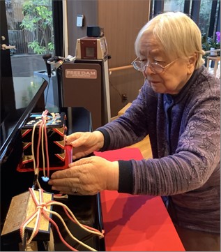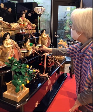 設置にはご入居者様にも手伝って頂き、着物のしわや髪の毛を直して、綺麗に飾って頂きました。
