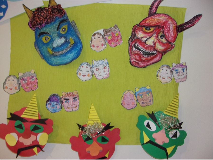 顔を書いて頂くと、色々な表情をした鬼の作品が出来上がりました。