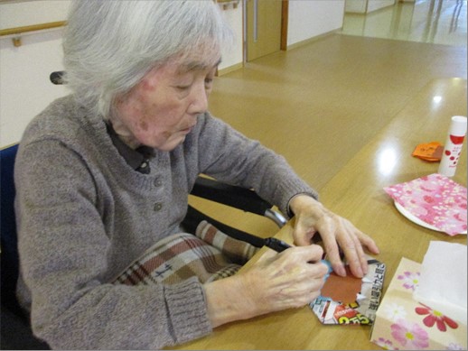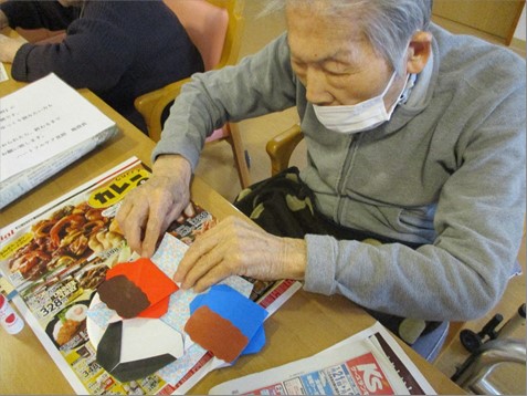 皆様「顔を書くのは難しいね」「怖い顔を書くのは意外と難しいな」「どんな風に書く」「折り紙を切るのは得意だから任せて」等々楽しそうに作品を作られました。