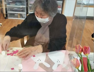 着物の部分は折り紙を一枚づつ貼り付けていく、指先を使う細かな工程ではありますが、皆様それぞれ違ったかわいらしいお雛様が完成しました🌼