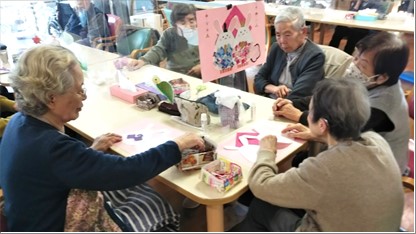 でも、折り紙が得意な方や折り方を覚えた方が、他の方に教えて下さるなど、皆さんで無理なく楽しみながら作業を進めて頂きます。