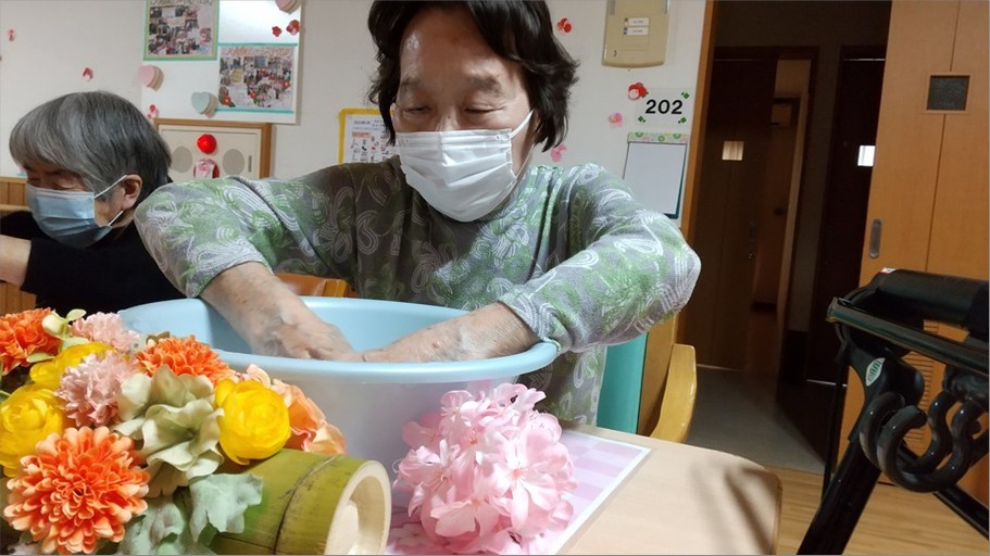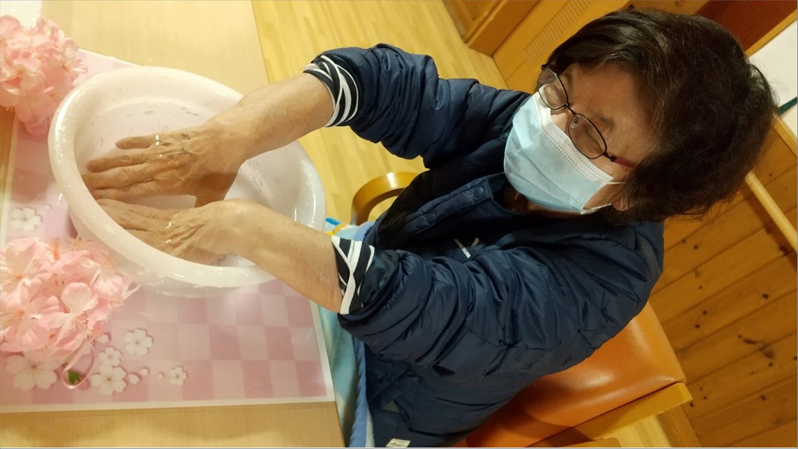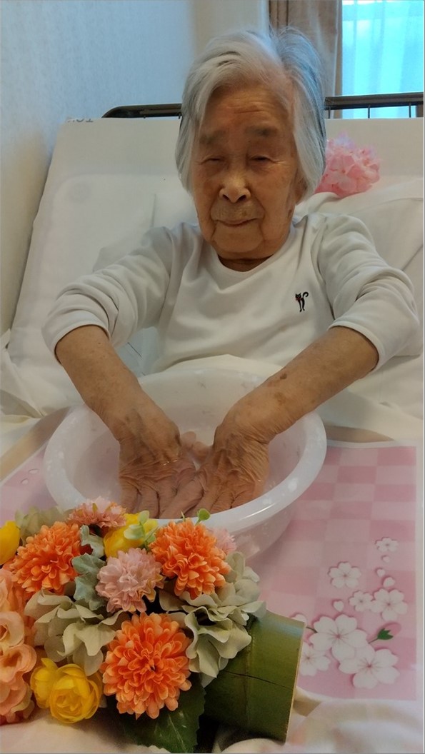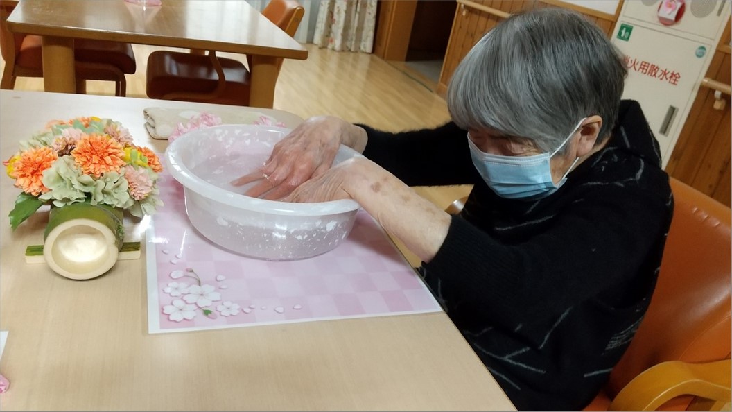 『ショートステイ ル・レーヴ南浦和』では、アロマハンドバスをおこないました。