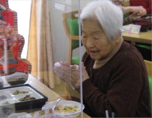 いつもと違い今回はテーブルの位置を移動させラウンジでお食事をされない方も参加され歌にもある様に「今日は楽しい雛祭りね」と皆さんで会話がはずみながらお食事されました。