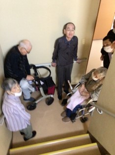 居室で眠っていた入居者様も職員の声に飛び起きて避難していただきました。