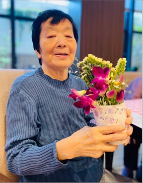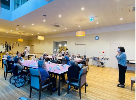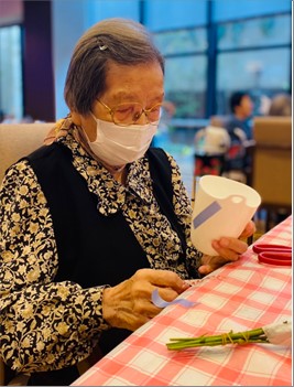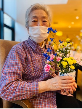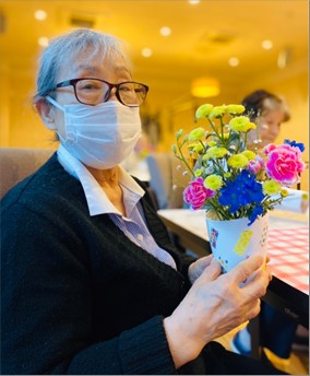 最後は出来上がった作品と一緒に記念撮影をし、皆さんお部屋に飾っております。