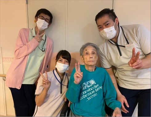 ハッピバースデー♪の掛け声で職員と一緒にパシャリ!