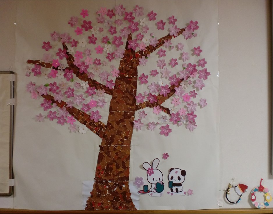 外の桜よりも一歩早く完成。 木の下には、『デイサービスセンター ル・レーヴ南浦和』では恒例となっている、パンダがお花見中です♪