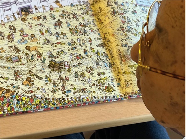 これは空いている時間に『ウォーリーを探せ』の本に熱中している入居者様の場面!!