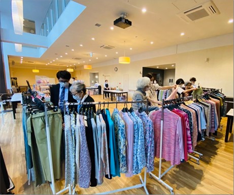 カーディガンやブラウス、ズボンや肌着靴下等々、たくさんの商品を持ち込んで頂き、広いスペースで商品を陳列し、ご入居者様は思い思いの買い物をされておりました。