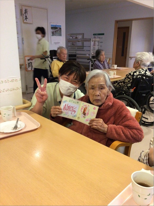 そして、スタッフ手作りの誕生日カード贈呈とみなさまからのバースデーソングでお祝いしています♪