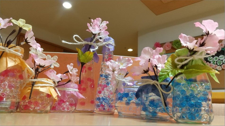 今日は、良い香りの消臭ビーズを好きな瓶に入れて桜の花をあしらってみました。
