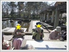 「大きい池だね~。」、「魚釣りしている人がたくさんいるね。」、「綺麗な桜だね。」と道路、駐車場が狭かった為、ここでは車内から眺めて頂きました。