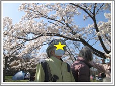 一休みしたら桜の木の下へ移動。「近くで見るともっと綺麗だね。」、「今年も見れて良かったわ。」と声があがります。