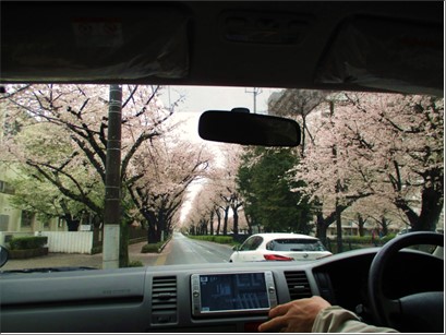 皆さま数日前からお花見を心待ちにされていましたが、残念ながら当日は生憎の花散らしの雨…。車の中でお花見になってしまいました。