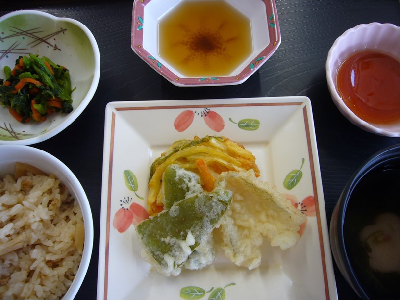 「たけのこご飯」「天ぷら」「菜の花のお浸し」「いちごゼリー」などです。