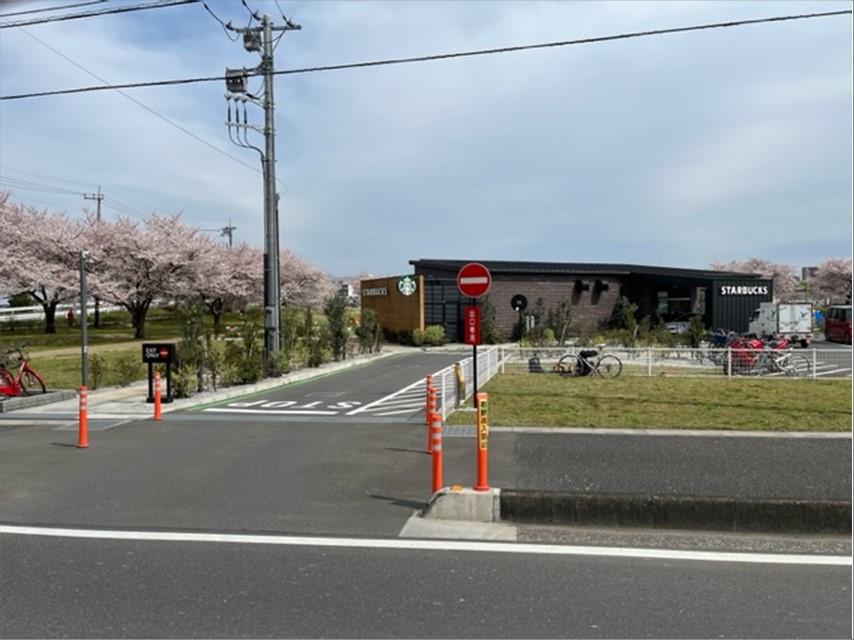 その河川敷にはスターバックスが出来てこの時期は駐車場もいっぱいでした。