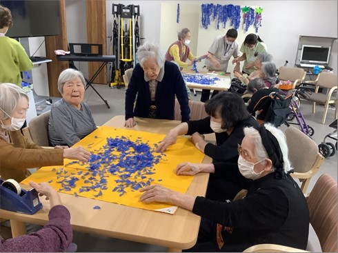 「きれいなものを作るのは気持ちよかった」「皆とはなしながらできて楽しかった」「音楽にのりながら手を動かしたのは久しぶりよ」と感想を述べてくださいました。