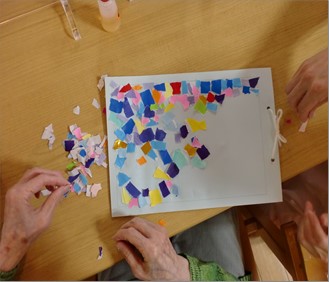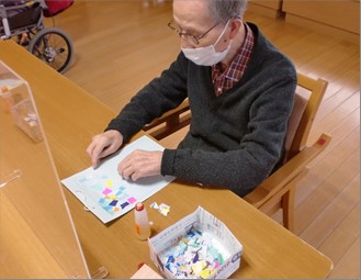 これまでにも『デイサービスセンター ル・レーヴ南浦和』では、さまざまな製作イベントを行ってきましたが、完成するまでどのようになるか予想が難しいちぎり絵製作は、皆様からの人気も高い製作の1つです。