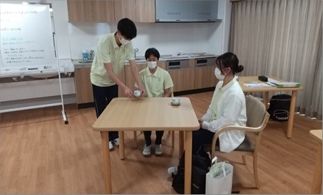研修では、社会人の心構えから、ビジネスマナー、緊急時の対応、介護技術、介護に関わる事柄等々を学びました。