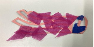 続いて裏側にトレーシングペーパーを貼り、その上に小さくちぎったお花紙の小片を貼って仕上げます。