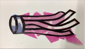 全体が乾いたら、窓のように光が透ける場所にセロテープで作品を貼り付けます。