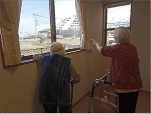 3月・4月と、施設すぐそばの山の下埠頭に、日本を周遊する豪華客船が寄港し、皆様窓からご覧になって、「大きいね~!」「豪華だね~!」と驚かれていらっしゃいました。