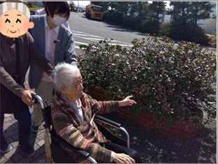 お天気が良かったこともあり、ご入居者様と一緒に近くまでお散歩へ出かけて来ました。