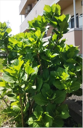 『リーシェ亀田中島』の線路脇に植えてある「紫陽花」の葉の色も段々濃くなり、花が咲くのがとても楽しみです。