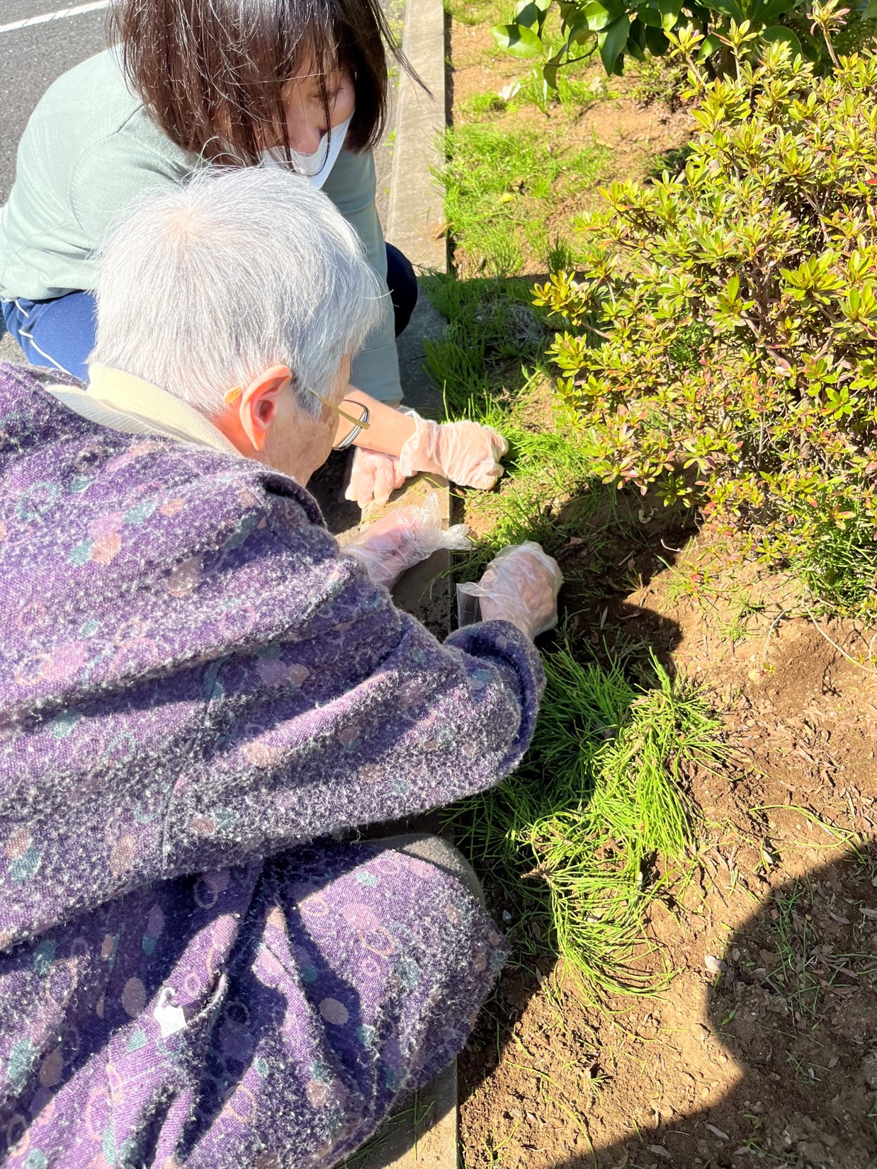 かと、思いきや草むしりをしている入居者様の手が止まらない。