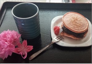 お次は、桜どら焼き!大きなパンケーキを桜色に焼き上げ、あんこ、イチゴ、ホイップクリームを自分でデコレーション!