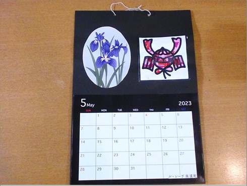 カッコイイ兜と鮮やかな菖蒲の花のカレンダーの完成です!