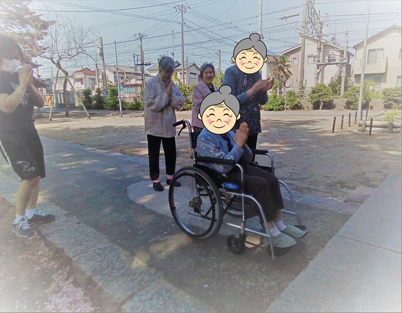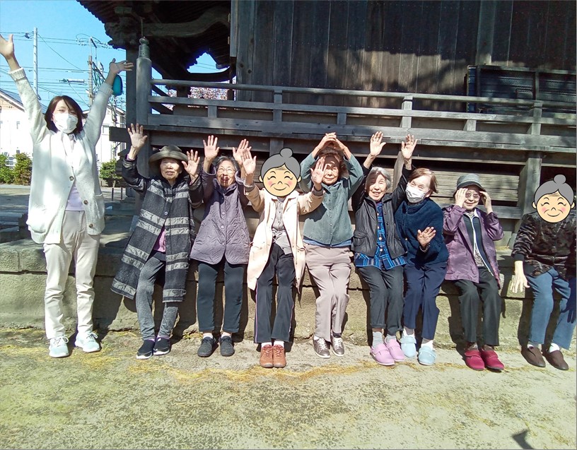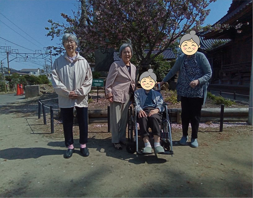 4月末、ゴールデンウィーク前に、ご入居者様数名と近所の石山諏訪神社まで散歩に行ってきました!!