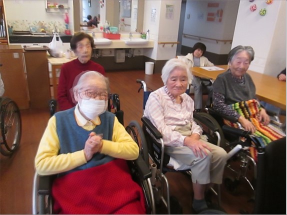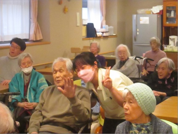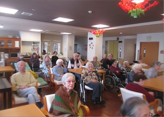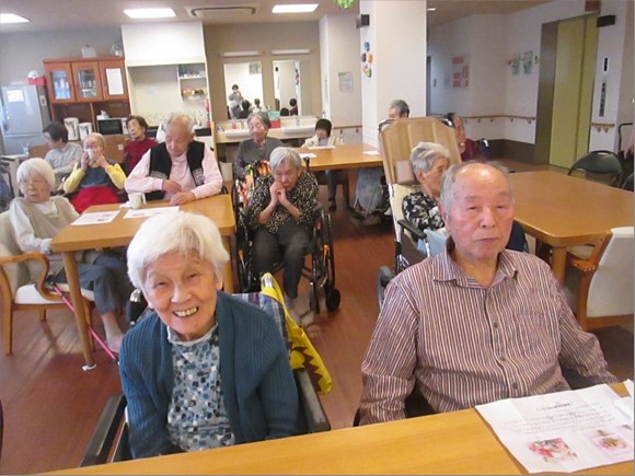 その後皆さんと歌の会を開催いたしました。最初の曲は「母さんの歌」です。「懐かしいねえ」と喜んでくださいました