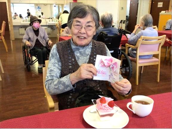 ケーキを食べながらご家族様からのメッセージカードをご覧になり「元気かしらね」「会いたいわね」「いくつになっても親は親なのよ」と、子を想う母の横顔を覗かせておられました。