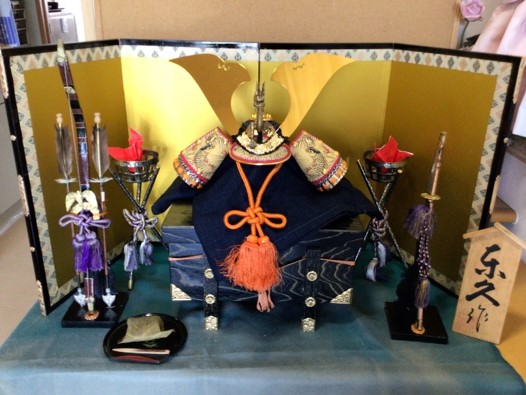 端午の節句に欠かせないのが五月人形ですね。リーシェの玄関にも兜や弓、太刀など、勇ましい戦闘道具を並べてみました。