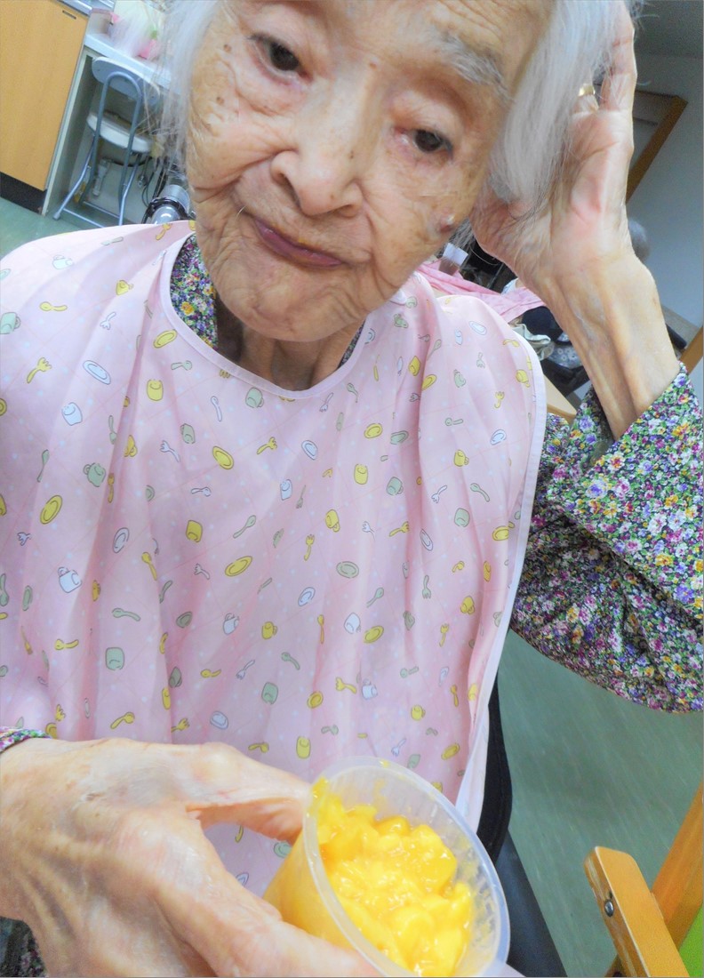 おやつに、マンゴープリンとコーヒーをご用意致しました。のど越しツルン!が更に美味しく感じられる季節ということもあり、なかなか好評でした。