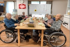 男女問わず朗らかに会話がはずみ、食が細い方でも何種類ものスイーツを召し上がり、スタッフとも話が弾みます。
