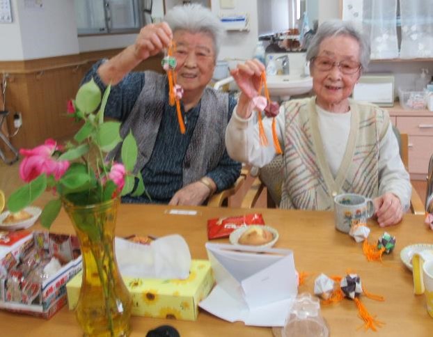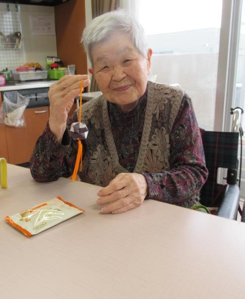 出来上がった物を各々持ち帰られ、部屋に飾ったり、杖に付けたりしていました。