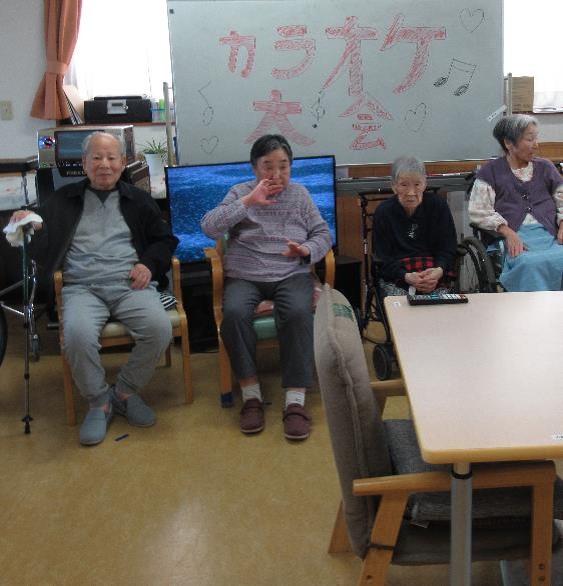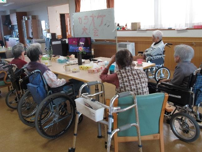 カラオケ大会!!自分の18番を歌われたり♪聞き入ったり、口ずさんだりしていました。