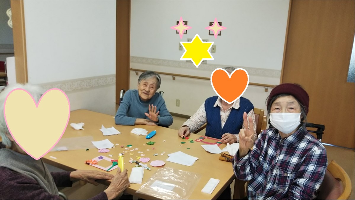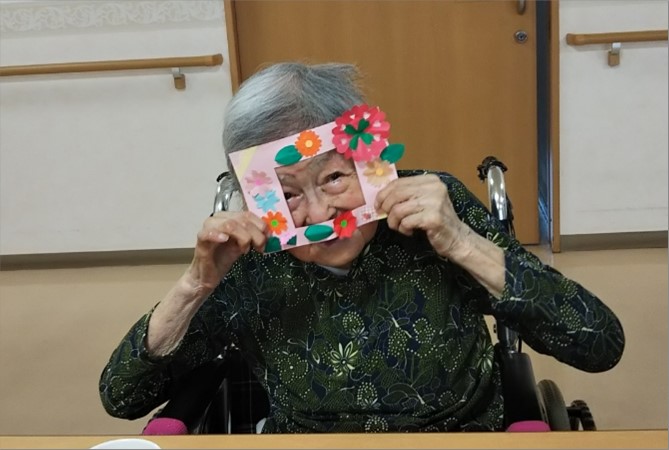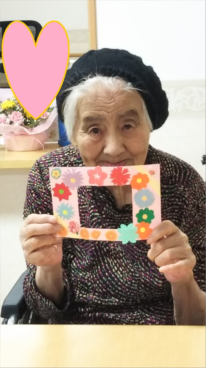 母の日に向け、写真フレームの飾りつけも行ってもらいました。