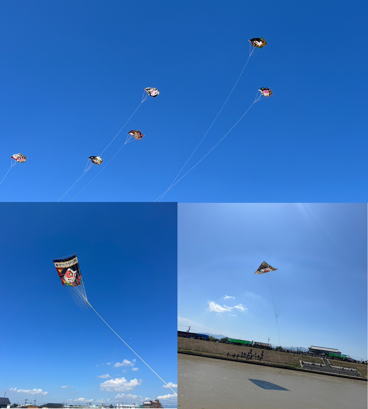 当日、イベント会場は大盛り上がりで、凧を揚げる地域の方々の気合い、熱気が感じられ、様々な色とりどりの凧が、迫力満点でした!