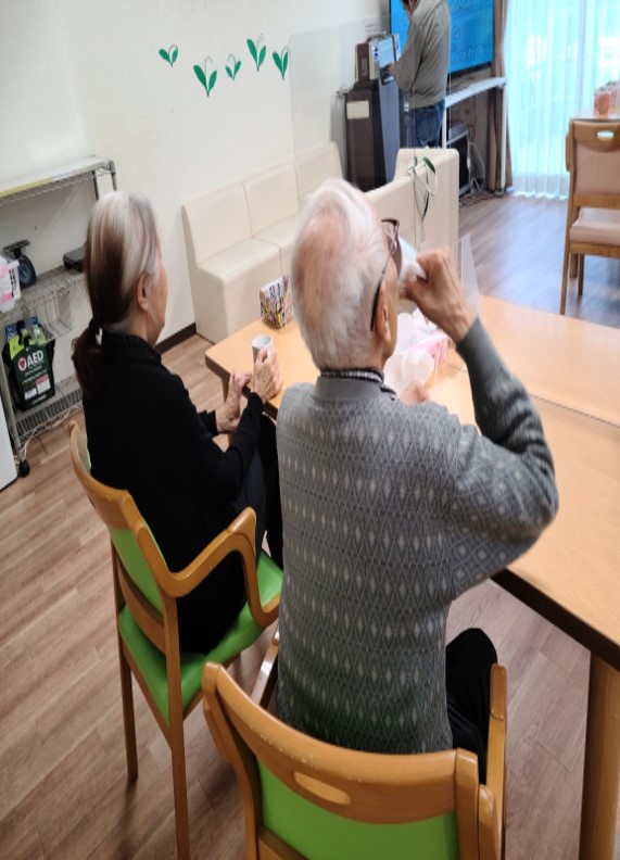 体操後はカラオケを行い、知っている歌を口ずさみ、ご入居者様同士の会話を楽しまれております。