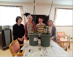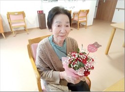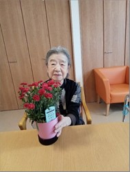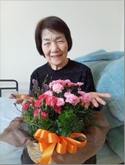 母の日には、きれいなお花が届き喜ばれておりました。大切に水やりされていらっしゃいます(^^)