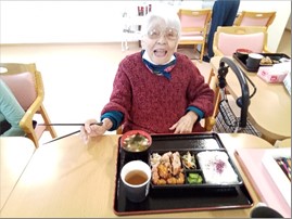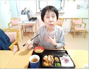 プチ旅行の気分を味わって頂こうと、昼食にはからあげ亭のわいわい弁当を食べました☆からあげは、とても大きく中もジューシーで好評でした(^^)v