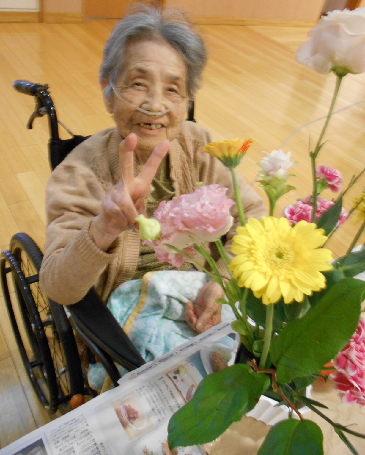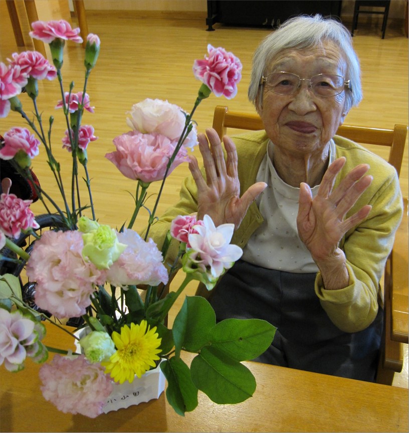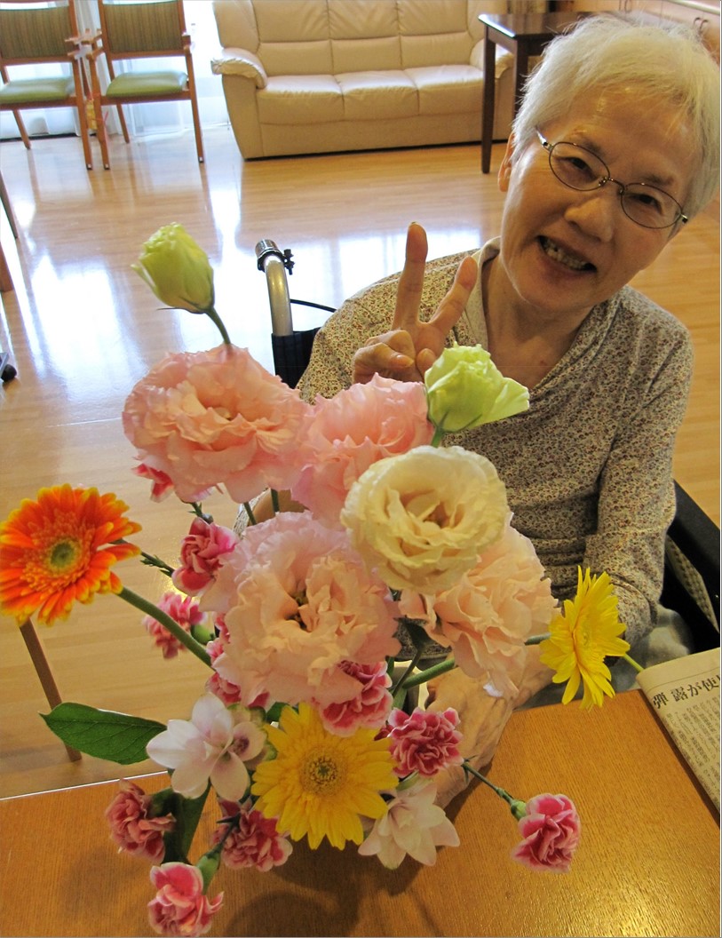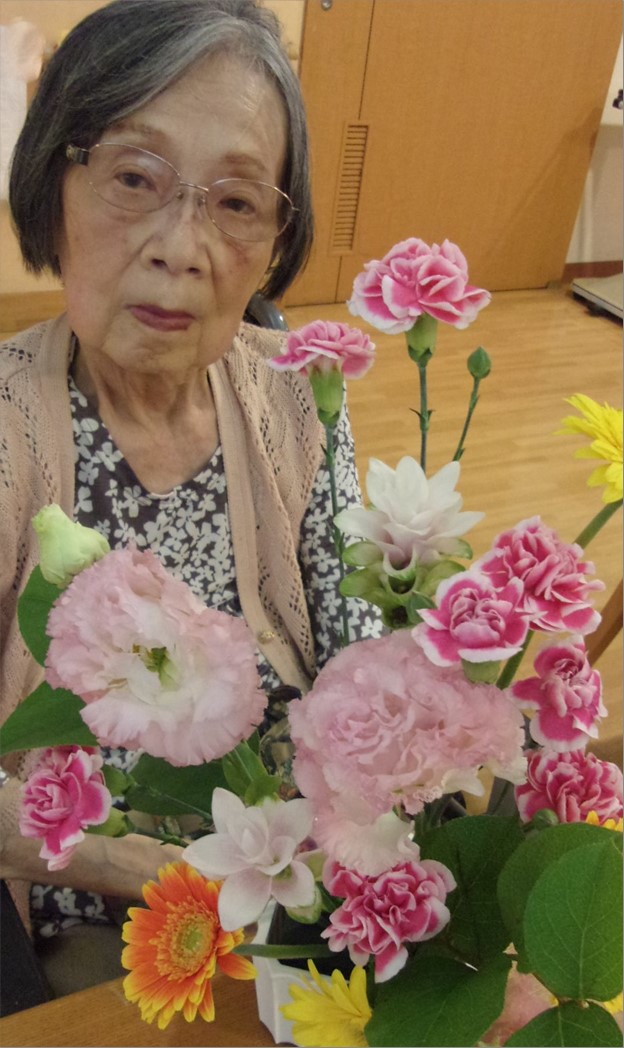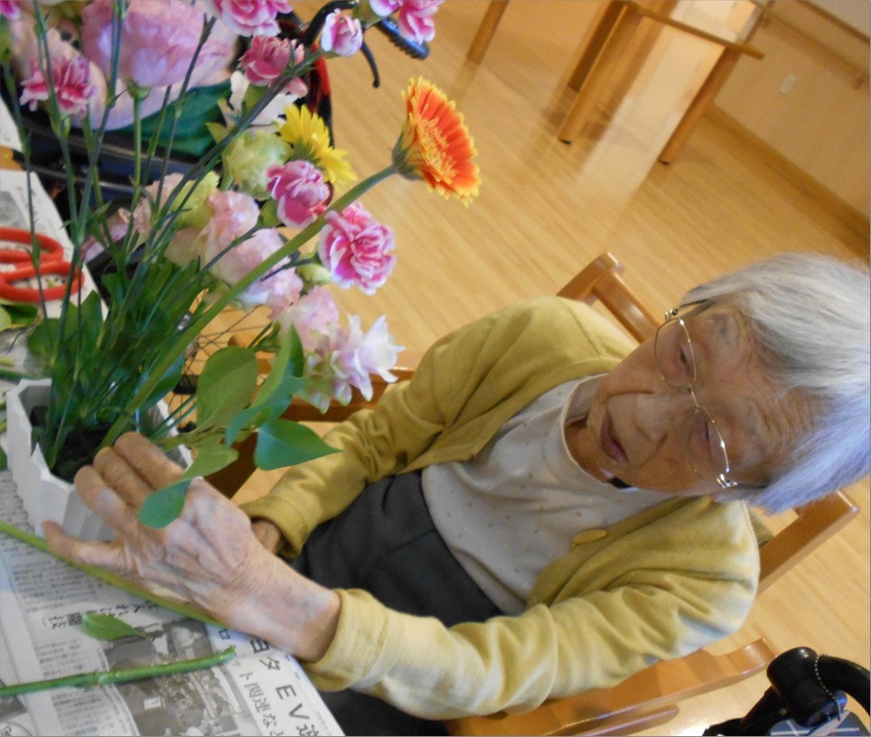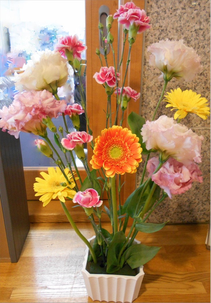 コロナ禍で中止となっていた人気のレクリェーションの一つであります。 今回のお花は「ガーベラ」「カーネーション」「トルコキキョウ」「ジンジャー」の4種類。