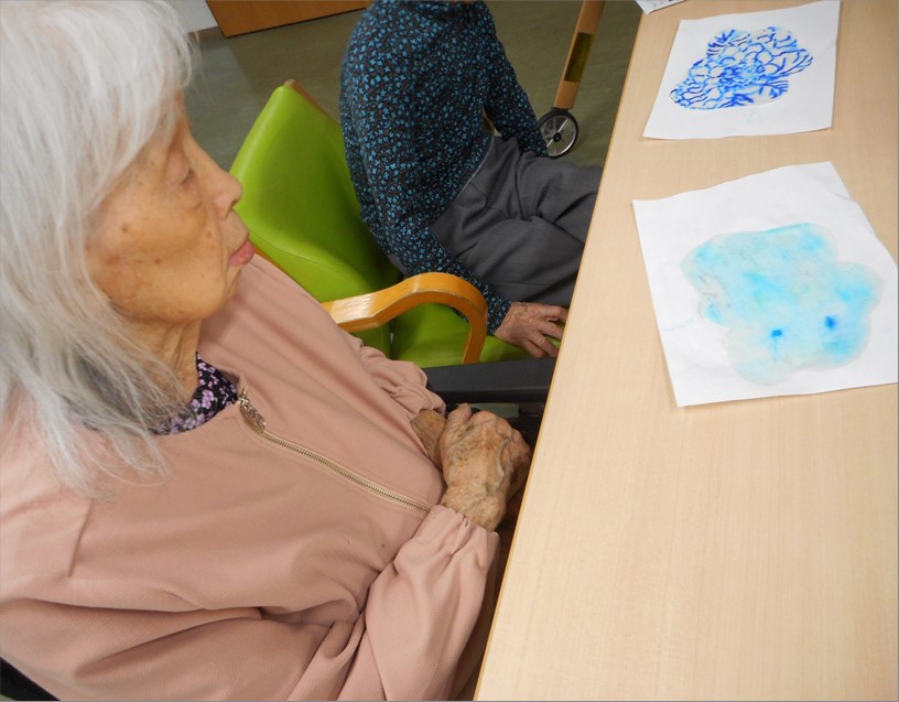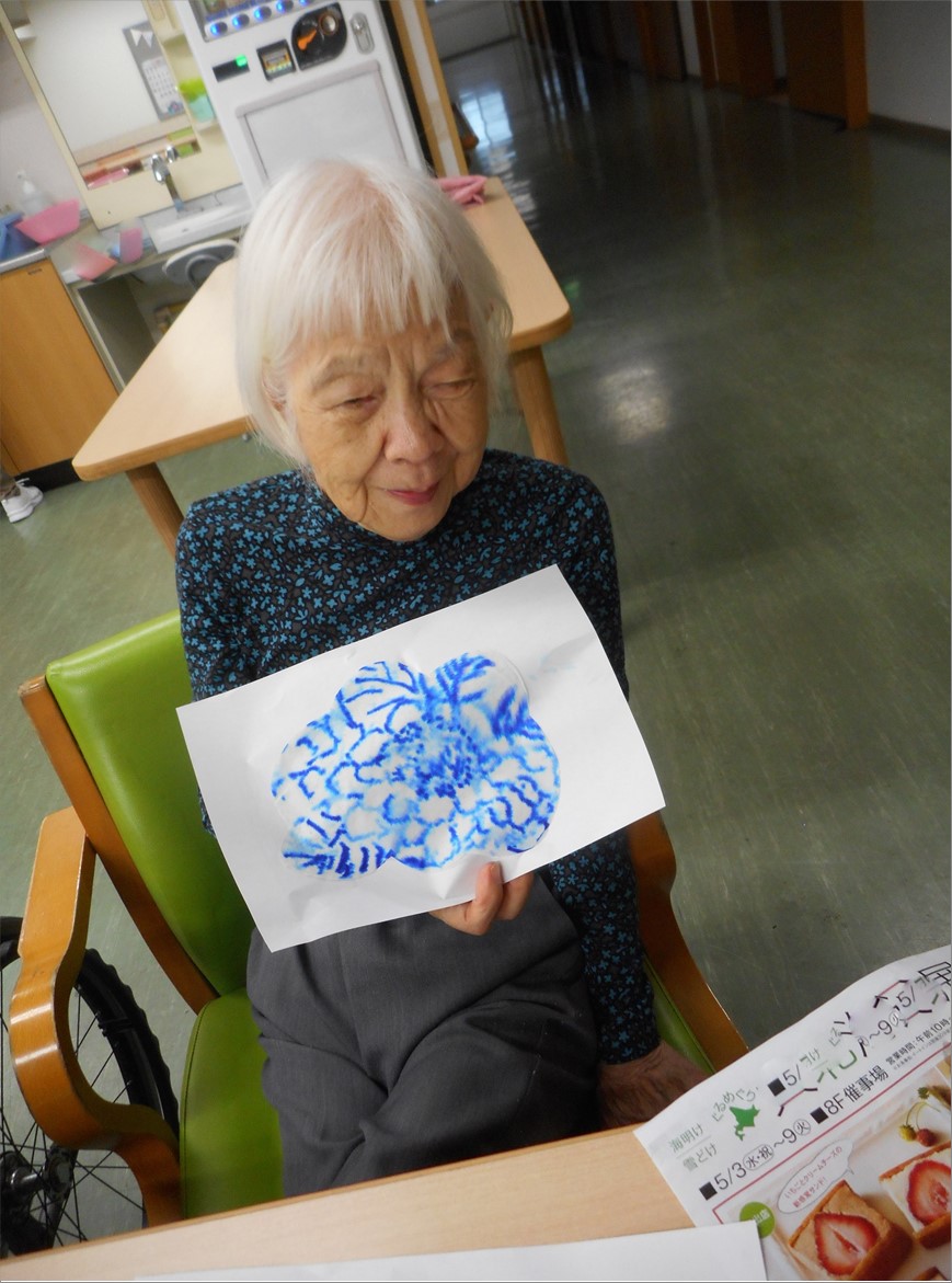 紫陽花が咲く事は、雨ばかりの季節の救いだと思います。気分が明るくなるように、入居者様にレクリエーションで紫陽花を作っていただきました。
