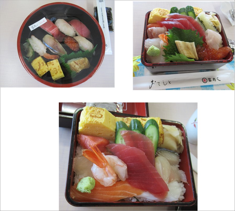 中ちらし寿司、ちらし寿司、上寿司、富寿司にぎり等々お好きなものを選んで召し上がられていました。