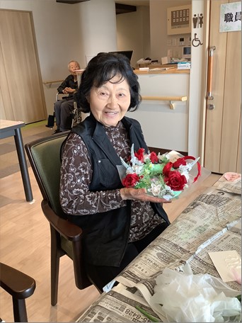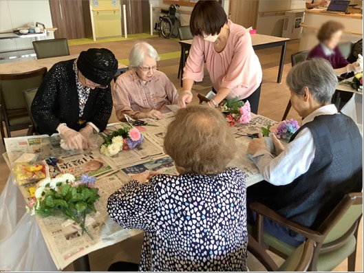『ローベル上井草』のご入居者様はお花がお好きな方が多いので楽しそうに制作しておられました。